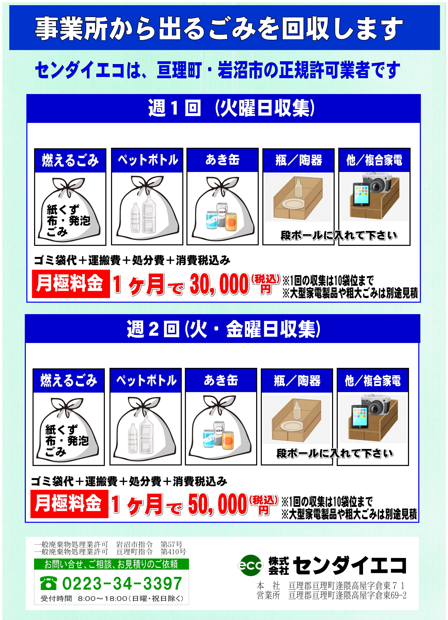 上記の単価には、「運搬費・処分費」が含まれております。消費税は別途。