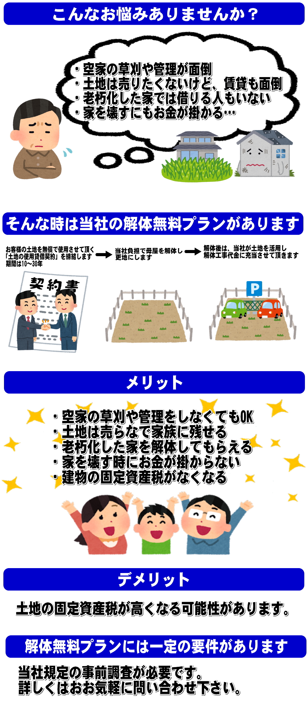 建築物解体は建物の築年数、建築工法によって作業方法は大きく異なってきます。 当社は、現地状況を把握するための徹底した現地調査に始まり、お客様のご希望にお応えできるよう、最適な施工計画を立案する事を常に心掛けています。